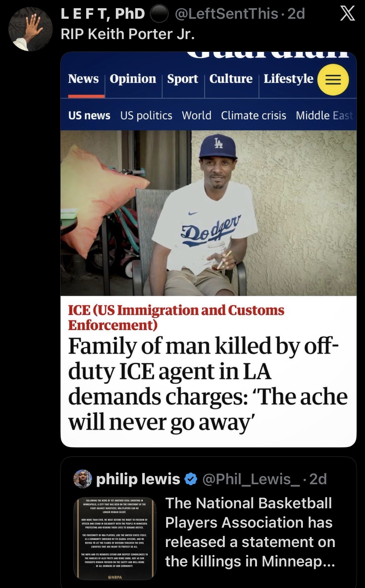 Why is this not familiar? Why is seeing black suffering not shocking? Why do we see the pain of every other race being acknowledged? These are only a few questions I ask myself while watching the news in 2026. It’s not selfish to wonder why? Why do they only speak about two individuals being killed when there have been several? Or why the big papers want to leave out individuals like Keith Porter? Who was also was shot by an off-duty ICE agent.