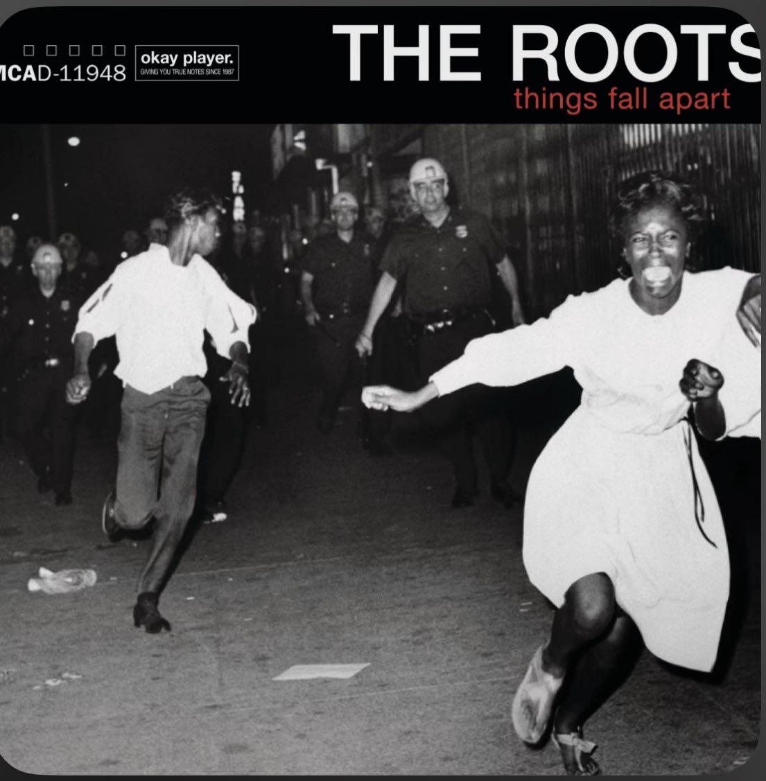 The Americans who have disconnected from the past are feeling like life is falling apart. The shock, the sadness, the pain, the tears, the long-lasting scars of mistrust; African Americans have been there. Because of our toxic relationship with the narcissistic side of America, we try our best to inform others of the potential pitfalls that American behaviors have ignored. The pitfall is a lack of empathy for their fellow human. The lack of technology didn’t stop the images of the 60’s to circulate that also didn’t stop the lack of empathy provided to the people experiencing it. When this Album came out, it was 1999, and supposedly all was well here in America for black people. The actuality of the situation, what was really going on, was suppressed and not acknowledged by anyone. They ignore the facts and continue to enforce laws that disproportionally harm black communities. The Roots’ album cover is a reminder of the continued fight against injustice and oppression. It was easy then to ignore the plights of black people but it’s no longer easy when everyone is exposed to the truth when one of their own falls victim to the same evil as African Americans.